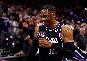 本場比賽,威少出戰(zhàn)37分28秒,17中10,其中三分6中3,罰球4中4,得到26分12籃板6助攻2搶斷,正負值-5。