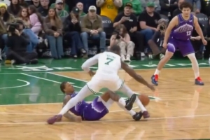 第四節(jié)最后時刻,杰倫-布朗遭滑鏟倒地,裁判未吹罰犯規(guī);對此,本場主裁Kevin Scott在賽后采訪時給出了自己的理由。