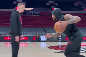 下一篇: 殺手锏??萊昂納德賽前熱身練習(xí)中距離單打~